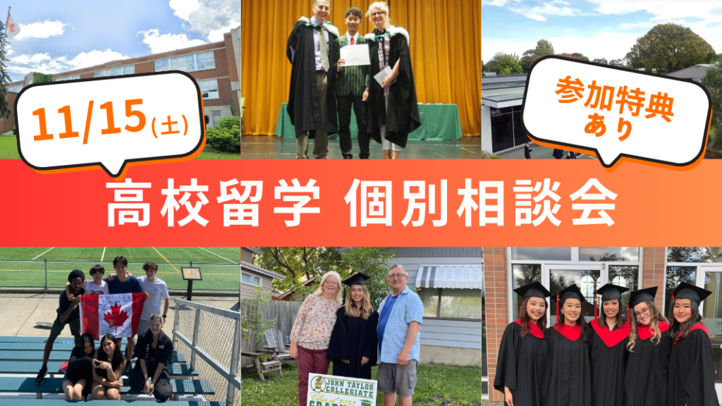 上記日程でのご参加が難しい場合、別途個別カウンセリングにてご相談を承ります。下記カウンセリング予約ボタンよりご予約ください。備考欄に「高校留学個別相談」とご入力いただくとご案内がスムーズです。
