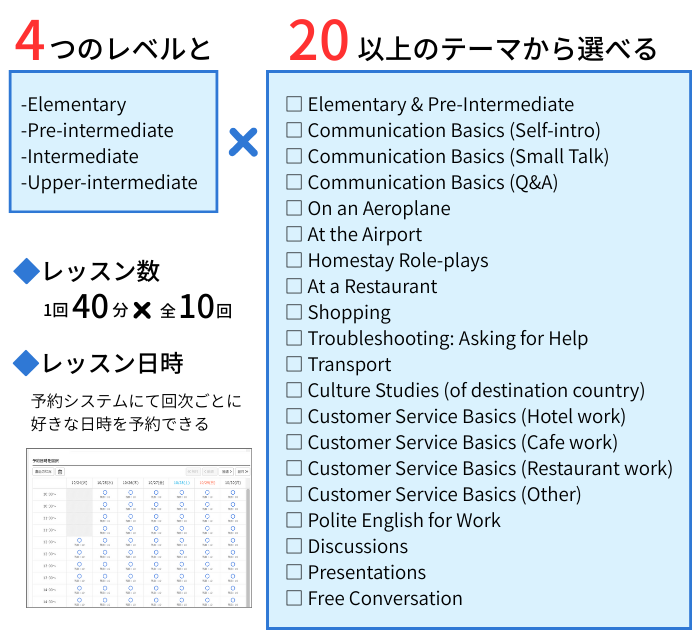 申込から出発まで何度でも無料のオンライングループ英語講座にご参加いただけます。出発前に英語力を磨くことでより充実した留学生活が可能に。