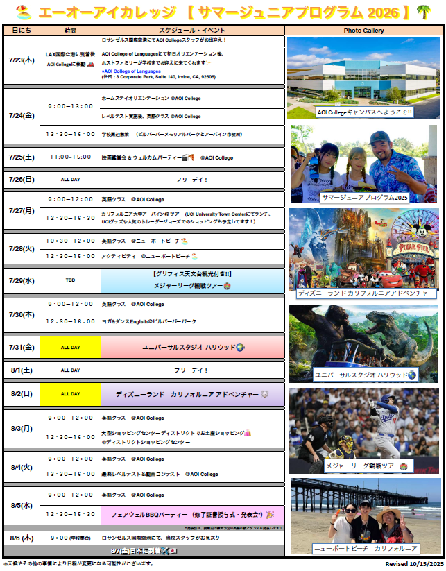 ※スケジュール内容は、現地受入側や天候等の諸事情により変更となる場合があります。