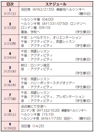研修期間 | 日数 | 旅行代金 |