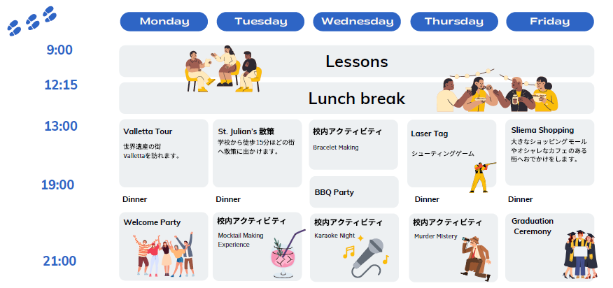- 滞在・食事:学生寮(2~4人部屋)・1日3食