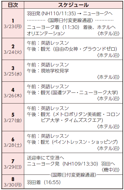 • 午前はレッスン、午後はニューヨーク観光でメリハリのあるプラン