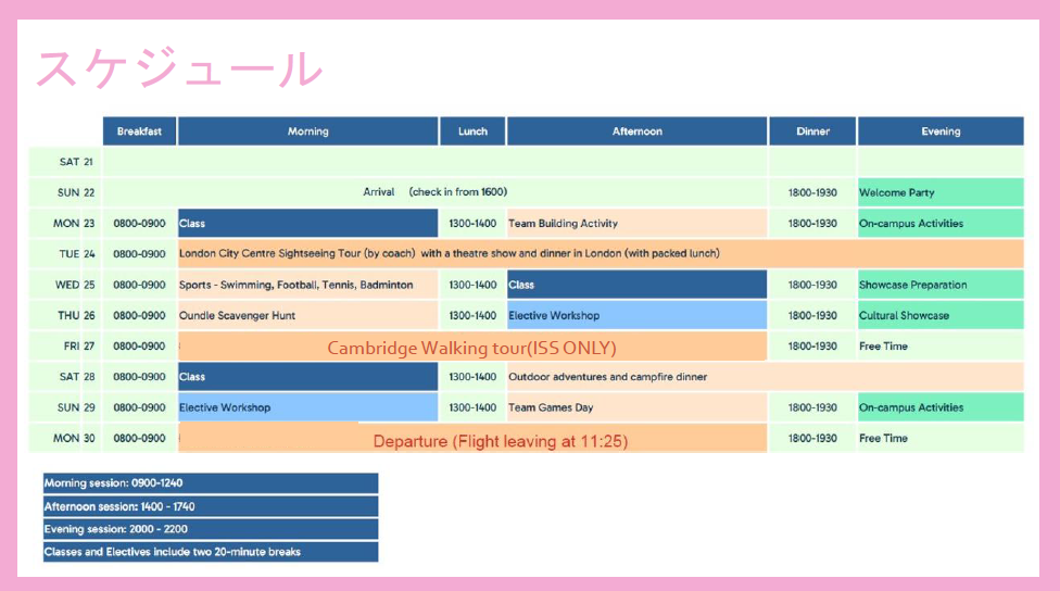 - 滞在・食事:学生寮(2 ~ 4 人部屋)・1 日3 食(機内食含まず)