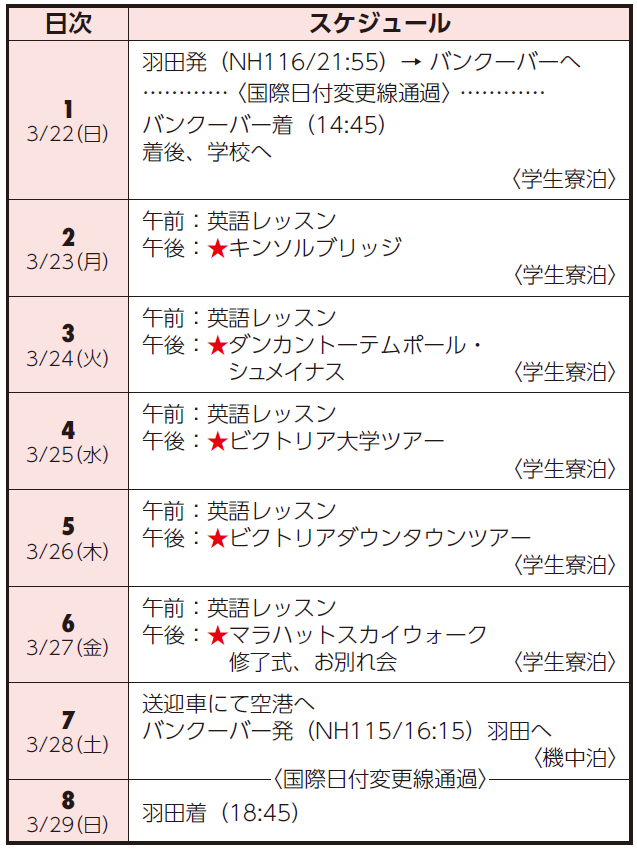 - カナダの現地校を利用し、英語レッスンやアクティビティを経験できる