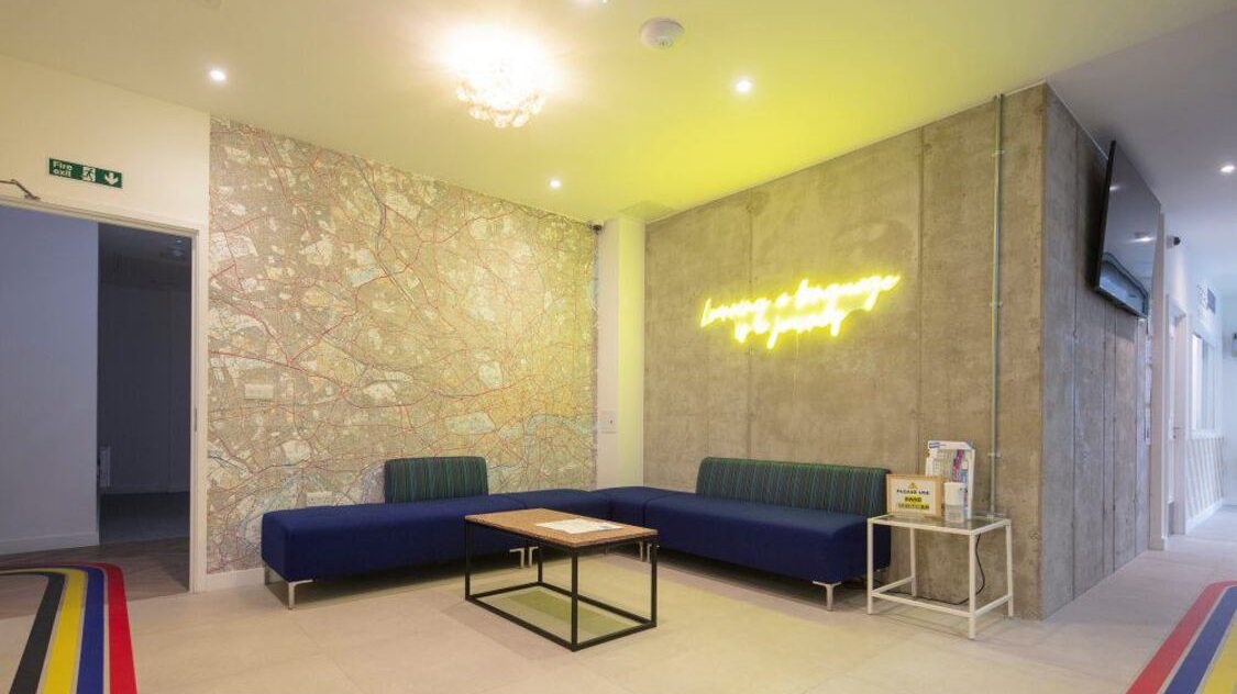 ロンドン中心地から地下鉄で20分程、ロンドン北部のフィンチェリーという緑豊かで、レンガ造りの建物が立ち並ぶ落ち着いたエリアにあります。生徒数は100名程で学校自体はこじんまりとしていますが、スタッフは皆温かく、まさにアットホームという言葉がぴったりです。月1回の個人面談で各生徒のレベル向上にもきめ細やかに対応してくれます。ホームステイの質も良く、学校から徒歩で通えるホストファミリーが多いので通学も楽ですし、ロンドン中心地でショッピングを楽しみたい!という時でも30分ほどで行けるのも魅力的です。英語コースは英語学習、レジャーや旅行用の英語、プロの英語、教師の英語、個人開発のための英語といった目的別の学生のニーズに合うような工夫がされています。