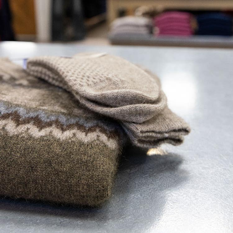 - ポッサム:ポッサム(フクロギツネ)の毛とウールを混ぜた混紡製品は、カシミヤのように柔らかく、驚くほど軽いのが特徴です。